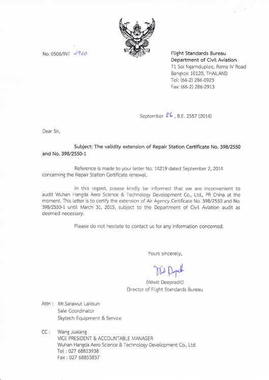200110月    公司獲中國民航總局授權(quán)的民航維修許可證。